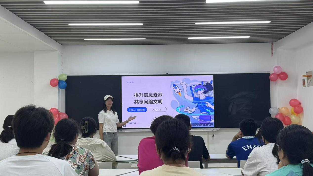 在数字浪潮奔涌、网络信息泥沙俱下的时代,为锻造员工精准甄别信息的 “火眼金睛”,厚植网络文明精神土壤,经济学类 2404 班于5月21日下午在越园四舍104举办 “提升信息素养,共享网络文明” 主题班会。此次班会由班长贾金诗怡全程主持,2404班全体同学参与。